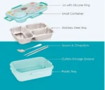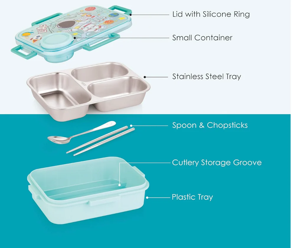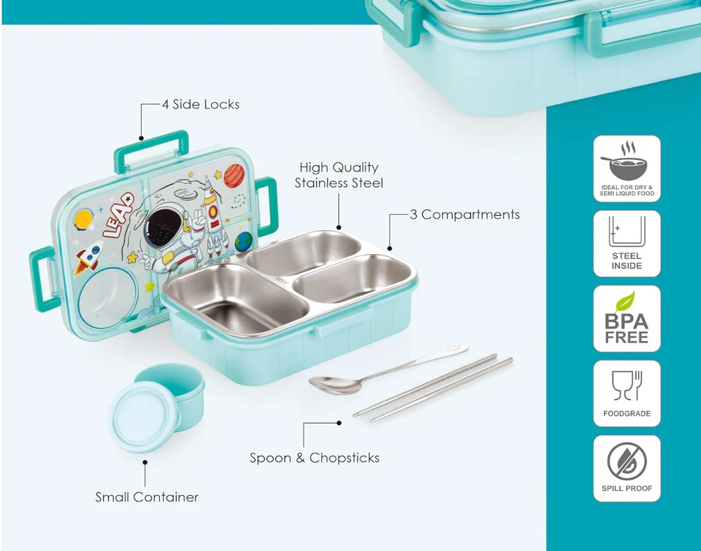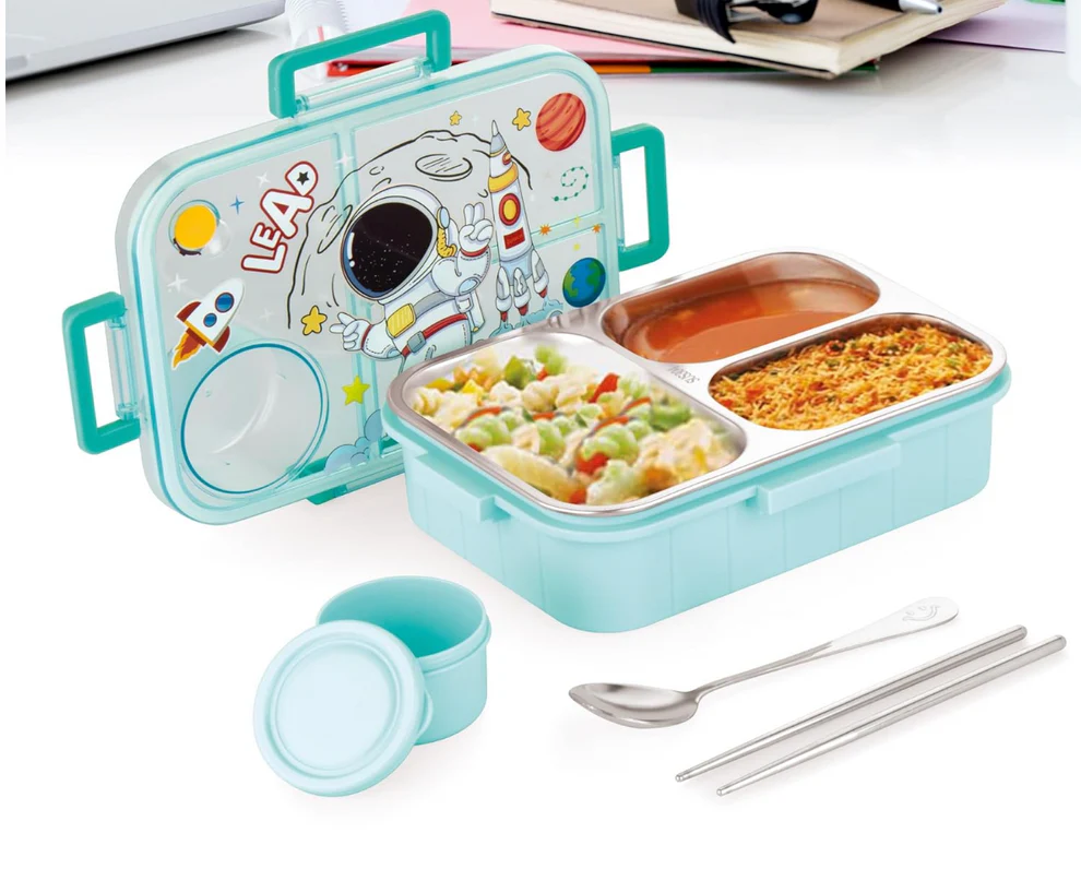 3 Compartment Space Lunch Box With Container, Spoon And Chopsticks