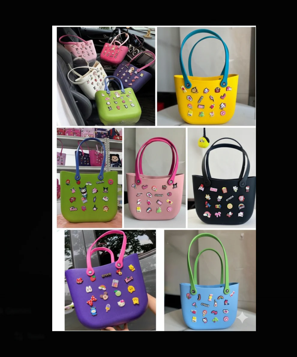 TMDA Decorative Tote Bag with Charms, Double Handle Design, COLOUR MAY VARY, 24 x 12 x 20 cm