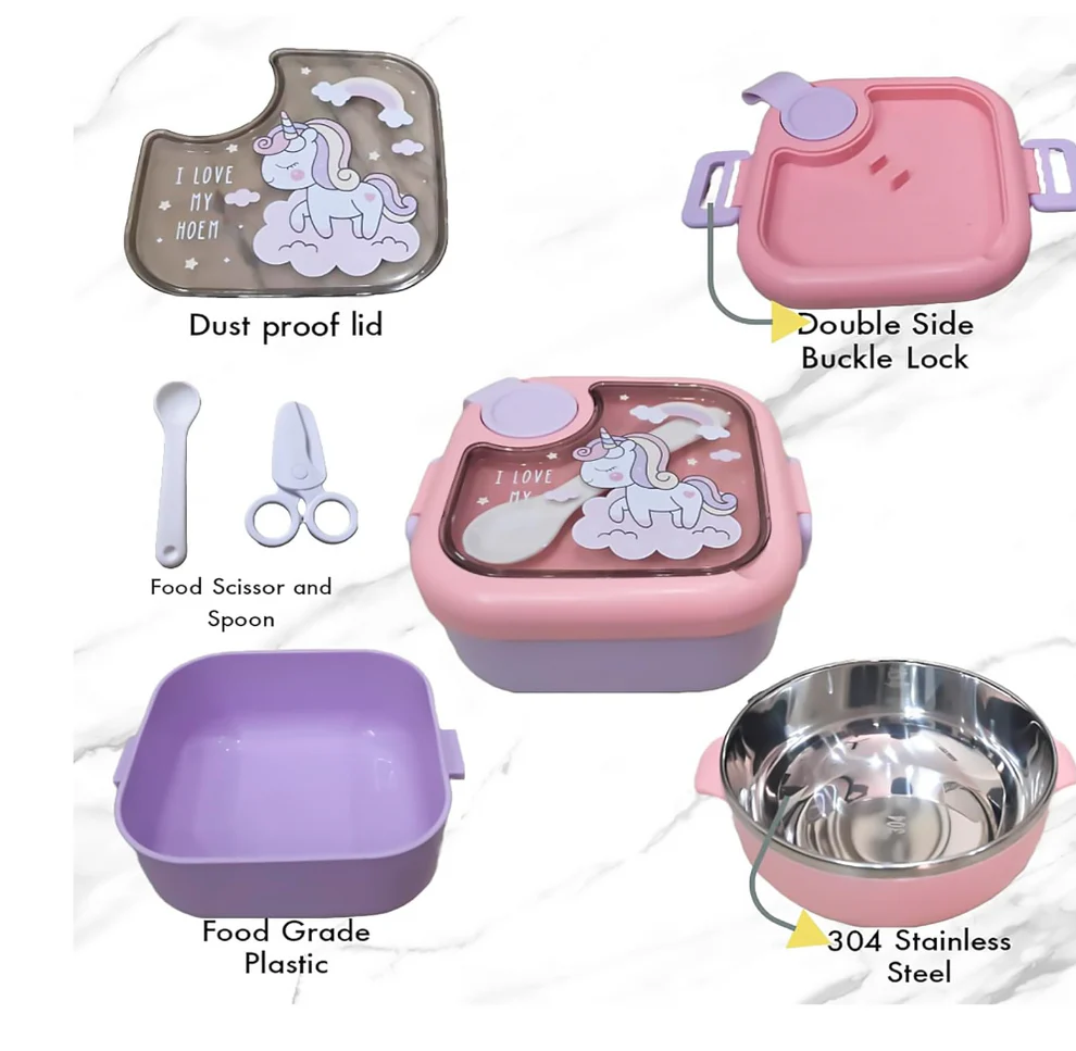 Unicorn Mini Lunch Box With Bowl, Spoon and Scissor