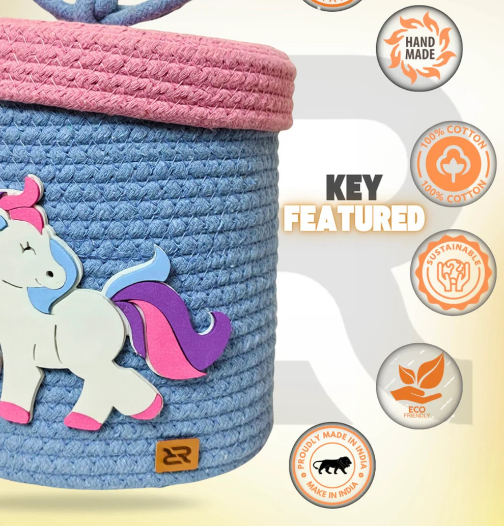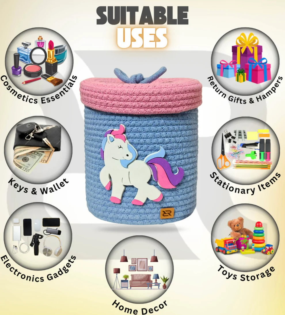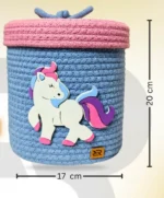 Unicorn Woven Storage Basket – Cute Rope Organizer with Lid for Kids Room & Nursery